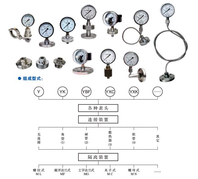 該類儀表以隔片隔離裝置將被測介質與壓力表表頭分開,以滿足保護測量元件和特殊適用場合的測壓需求。廣泛用于石油、化工、醫藥、食品、造紙、噴涂等行業測量具有強腐蝕性、高粘度、易結晶、含有固體顆粒的液體介質壓力。